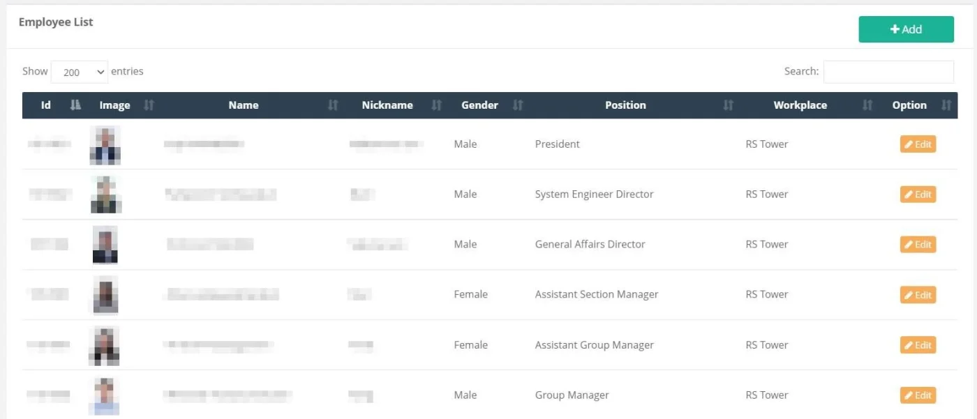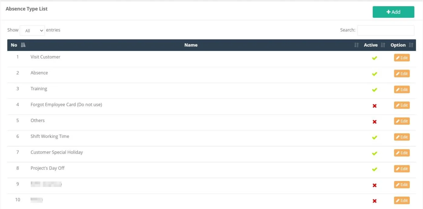 ・システム内のデータ管理(欠勤種別、部署、役職、雇用形態、従業員のステータス、勤務地など)